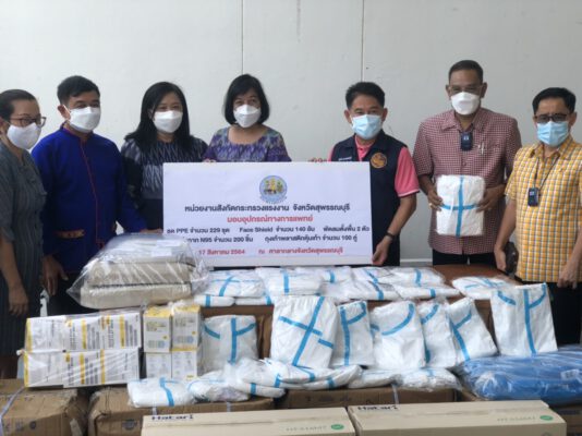 วันนี้ 17 สิงหาคม 2564 หน่วยงานในสังกัดกระทรวงแรงงานจังหวัดสุพรรณบุรี มอบอุปกรณ์ทางการแพทย์ ให้แก่นายณัฐภัทร สุวรรณประทีป ผู้ว่าราชการจังหวัดสุพรรณบุรี เพื่อสนับสนุนการปฏิบัติงานของบุคลากรทางการแพทย์และเจ้าหน้าที่ที่เกี่ยวข้อง ในการรับมือกับการแพร่ระบาดของเชื้อไวรัสโคโรนา 2019 (COVID-19) ในพื้นที่จังหวัดสุพรรณบุรี ซึ่งมีผู้ติดเชื้อเพิ่มขึ้นเป็นจำนวนมาก เป็นการสร้างขวัญกำลังใจให้บุคลากรทางการแพทย์ รวมทั้งประชาชนที่ได้รับผลกระทบที่ต้องเข้ารับการรักษา