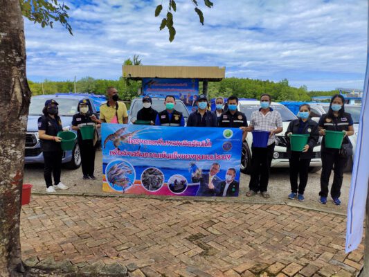 สำนักงานประมงจังหวัดตรัง ร่วมกับองค์กรชุมชนประมงท้องถิ่นบ้านควนตุ้งกู ร่วมปล่อยพันธุ์กุ้งกุลาดำ ภายใต้โครงการเพิ่มผลผลิตสัตว์น้ำเพื่อส่งเสริมความเข้มแข็งของชุมชนประมง ประจำปีงบประมาณ 2564