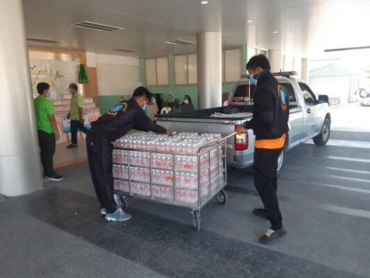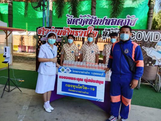 วันนี้ (วันที่ 18 สิงหาคม 2564) นายบุญชู จันทร์สุวรรณ นายก อบจ.สุพรรณบุรี มอบหมายให้เจ้าหน้าที่จากกองช่าง และสำนักปลัดฯ นำน้ำดื่มไปให้บริการแก่แพทย์ พยาบาล บุคลากรทางการแพทย์ และประชาชนที่มาฉีดวัคซีนซิโนฟาร์มได้ดื่มฟรีตลอดระยะเวลาการฉีดวัคซีน ที่โรงพยาบาลประจำอำเภอทั้ง 10 แห่ง