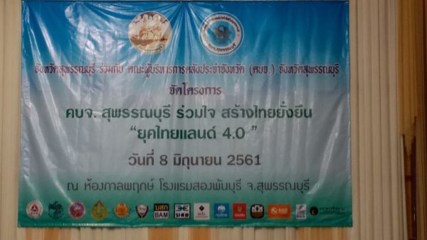 นายนพฤทธิ์ ศิริโกศล ปลัดจังหวัดสุพรรณบุรี เป็นประธานเปิดงาน “ คบจ.สุพรรณบุรีร่วมใจ สร้างไทยยั่งยืน” ที่โรงแรมสองพันบุรี โดยสำนักงานคลังจังหวัดสุพรรณบุรีร่วมกับหน่วยงานในกระทรวงการคลัง ธนาคารพาณิชย์ทุกแห่งและเครือข่ายโอทอป จัดขึ้น