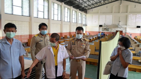 คณะกรรมการตรวจประเมินการจัดตั้งโรงพยาบาลสนามสำหรับชุมชน ลงพื้นที่ตรวจประเมินโรงพยาบาลสนามที่ค่ายลูกเสืออำเภอนาโยง จังหวัดตรัง