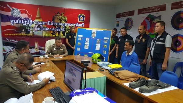 โดยเจ้าหน้าที่ตำรวจโดยการอำนวยการของ พ.ต.อ.สีหเดช สระกอบแก้ว ผกก.สภ.นครชัยศรี พ.ต.ท.ยุทธนา จันทร์มีศรี รอง ผกก.ป.สภ.นครชัยศรี นำการปฏิบัติ ร่วมปฏิบัติโดย พ.ต.ท.นิคม ชัยเจริญ รอง ผกก.สส.สภ.นครชัยศรี ,พ.ต.ท.พิษณุ เชิดโฉม สว.สส.สภ.นครชัยศรี พ.ต.ต.อิสรภาพ แก้วชลคราม สวป สภ.นครชัยศรี, ร.ต.อโฆษิต เจริญสุข รอง สว.สส.สภ.นครชัยศรี ร.ต.ท.พุฒิวัชร์ ทิมแสงจันทร์รอง สว.สส.สภ.นครชัยศรี เจ้าหน้าที่ฝ่ายสืบสวน ชุด ปจร. สภ.นครชัยศรี เจ้าหน้าที่ตำรวจ สภ.นครชัยศรี ร่วมกับสืบสวนติดคามจับกุมได้พร้อมของกลาง สร้อยคำทองคำหนัก 5 บาท 1 เส้น รถจักรยานยนต์ ยี่ห้อ ฮอนด้า เวฟ สีน้ าเงินด า หมายเลขทะเบียน 1 กฆ 708 นครปฐม 1 คัน หมวกกันน๊อค สีเขียวที่สวมใส่ขณะก่อเหตุ 1ใบ เสื้อผ้า ที่คนร้ายสวมใส่มาก่อเหตุ 2 ชุด