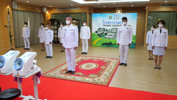 ที่ห้องประชุมราชพฤกษ์ โรงพยาบาลตรัง นายขจรศักดิ์ เจริญโสภา ผู้ว่าราชการจังหวัดตรัง เป็นประธานในพิธีรับมอบอุปกรณ์พระราชทาน ด้วย สมเด็จพระกนิษฐาธิราชเจ้า กรมสมเด็จพระเทพรัตนราชสุดาฯ สยามบรมราชกุมารี องค์นายกกิตติมศักดิ์ และองค์ประธานกรรมการมูลนิธิชัยพัฒนา ได้พระราชทานเงินจาก “กองทุนชัยพัฒนา สู้ภัยโควิด – 19 (และโรคระบาดต่าง ๆ)” จัดซื้ออุปกรณ์ทางการแพทย์ ให้แก่โรงพยาบาลตรังกระทรวงสาธารณสุข เพื่อบรรเทาปัญหาการขาดแคลนอุปกรณ์การแพทย์ และเพื่อเพิ่มศักยภาพ และประสิทธิภาพในการดูแลรักษาผู้ป่วยโรคติดเชื้อไวรัสโคโรนา 2019 (COVID-19) จึงได้ส่งมอบอุปกรณ์ทางการแพทย์พระราชทาน ได้แก่ เครื่องวัดความดันโลหิตแบบอัตโนมัติ ชนิดสอดแขน จำนวน 2 เครื่อง ให้กับโรงพยาบาลตรัง เพื่อใช้ในการตรวจคัดกรองรักษาผู้ป่วยโรคติดเชื้อไวรัสโคโรนา 2019 นับเป็นพระมหากรุณาธิคุณอย่างหาที่สุดมิได้ ของพสกนิกรชาวจังหวัดตรัง และจังหวัดใกล้เคียง