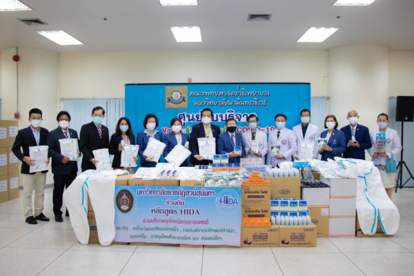 ดร. สมชาย อัศวเศรณี ประธานคณะกรรมการส่งเสริมกิจการมหาวิทยาลัย, ผศ.ดร. ปรีชาพงษ์เพ็ง รองอธิการบดีฝ่ายบริหารมหาวิทยาลัยราชภัฎสวนสุนันทา พร้อมด้วยคณะฯร่วมมอบอุปกรณ์ทางการแพทย์และเวชภัณฑ์ที่จำเป็นสำหรับผู้ป่วยติดเชื้อไวรัสโควิด-19 ให้แก่โรงพยาบาลวชิรพยาบาล โดยมี ผศ.นพ.จักราวุธ มณีฤทธิ์ คณบดีคณะแพทย์ศาสตร์ วชิรพยาบาล, ผศ.นพ.พรชัย เดชานุวงษ์ ผู้อำนวยการวชิรพยาบาล, รศ.ดร.นพ.เมษัณฑ์ ปรมาธิกุล ผู้ช่วยคณบดีคณะแพทยศาสตร์ ร่วมรับมอบ เมื่อวันศุกร์ที่ 27 สิงหาคม นี้ ณ อาคารเพชรรัตน์ วชิรพยาบาล ทั้งนี้ อุปกรณ์ทางการแพทย์และเวชภัณฑ์ที่มอบให้รวมมูลค่า 800,000 บาท มีดังนี้