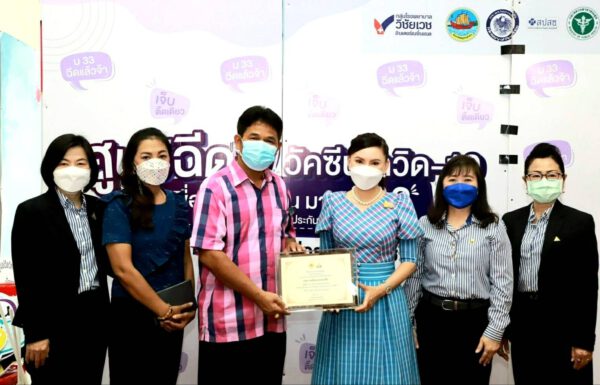รัฐมนตรีว่าการกระทรวงแรงงาน ท่านสุชาติ ชมกลิ่น ได้มอบหมายให้ดิฉันและคณะลงพื้นที่จุดฉีดวัคซีนโควิด-19 ให้แก่ผู้ประตน มาตรา 33 เพื่อมอบใบประกาศขอบคุณภาคเอกชนที่ร่วมให้การสนับสนุนสถานที่และโรงพยาบาลในเครือข่ายประกันสังคมที่สนับสนุนบุคลากรทางการแพทย์ในการฉีดวัคซีนโควิด-19ให้แก่ผู้ประกันตน มาตรา 33 สำหรับผู้ประกันตนในพื้นที่กรุงเทพมหานคร รวมทั้งให้กำลังใจแก่บุคลากรทางการแพทย์ ซึ่งการฉีดวัคซีนโควิด-19 ให้กับผู้ประกันตนมาตรา 33 เป็นหนึ่งในมาตรการที่กระทรวงแรงงาน ให้การป้องกันรักษาโดยเร่งรัดการฉีดวัคซีนให้แก่ผู้ประกันตนตามนโยบายรัฐบาล เพื่อควบคุมการแพร่ระบาดของโควิด-19 และสร้างภูมิคุ้มกันหมู่ในกลุ่มแรงงาน เพื่อให้กิจการเดินหน้าต่อไปได้” นางธิวัลรัตน์ กล่าวในท้ายสุด