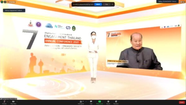 . วันที่ 2 กันยายน 2564 พิธีเปิดงานประชุมวิชาการระดับชาติ Engagement Thailand ครั้งที่ 7 โดยมหาวิทยาลัยเทคโนโลยีสุรนารี ซึ่งเป็นเจ้าภาพหลักในการจัดงาน โดยได้รับการสนับสนุนจากกระทรวงอุดมศึกษาวิจัยและนวัตกรรม (อว.) ,สมาคมพันธกิจสัมพันธ์มหาวิทยาลัยกับสังคม (EnT) ,National Co-ordinating Centre for Public Engagement – NCCPE(สถาบันคลังสมองของชาติ NCCPE), โดยเมื่อ เวลา 10.00 น ศาสตราจารย์ (พิเศษ) ดร.เอนก เหล่าธรรมทัศน์ รัฐมนตรีว่าการกระทรวงการอุดมศึกษา วิทยาศาสตร์ วิจัย และนวัตกรรม ประธานเปิดงาน“การประชุม วิชาการนำเสนอผลงานระดับชาติ Engagement Thailand ครั้งที่ 7 “และได้ปาฐกถา พิเศษ ในหัวข้อ “University Engagement” ในการนำผลงานรับใช้สังคมมากำหนดตำแหน่งทาง วิชาการ จากนั้นได้เปิดตัวเจ้าภาพจัดการประชุมวิชาการพันธกิจสัมพันธ์มหาวิทยาลัยกับสังคม ครั้งที่ 8 โดยมหาวิทยาลัยเทคโนโลยีราชมงคลศรีวิชัย เป็นเจ้าภาพในการจัดประชุมครั้งต่อไป