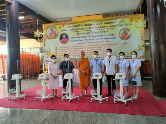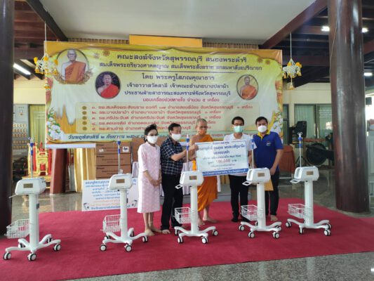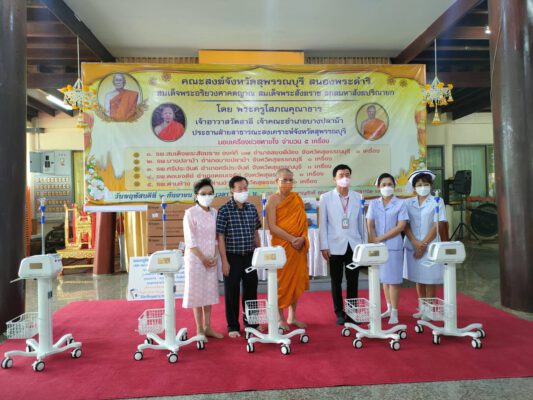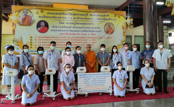 จัดมอบเครื่องช่วยหายใจ สำหรับใช้ในการรักษาผู้ป่วยติดเชื้อโควิด-19 ให้แก่ รพ.5 แห่งละ 1 เครื่อง ในเขตจังหวัดสุพรรณบุรี ในช่วงของสถานการณ์การแพร่ระบาดของโรคโควิด 19 ประกอบด้วย รพ.สมเด็จพระสังฆราช องค์ที่ 17 อ.สองพี่น้อง รพ.บางปลาม้า อ.บางปลาม้า รพ.ศรีประจันต์ อ.ศรีประจันต์ รพ.ดอนเจดีย์ อ.ดอนเจดีย์ และ รพ.ด่านช้าง อ.ด่านช้าง