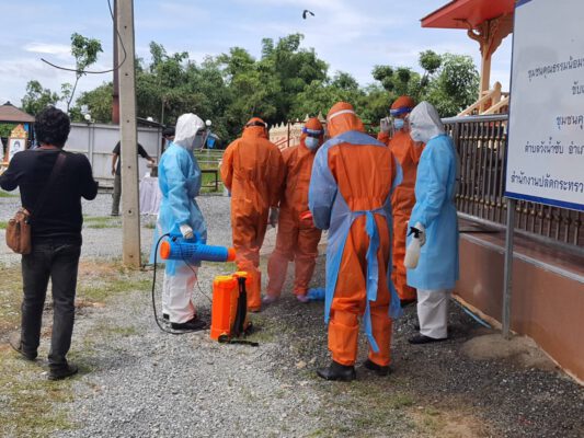 โดยมีทางเจ้าหน้าที่มูลนิธิกู้ภัยเสมอกันสุพรรณบุรี ใส่ชุด PPE ย้ายร่างมาทำการประชุมเพลิง โดยมีนายพรชัย โพธิ์ศรี ผู้ใหญ่บ้านหมู่ที่ 2 ตำบลวังน้ำซับ , นายสมศักดิ์ ขลังธรรมเนียม เจ้าหน้าที่ชำนาญการ สาธารณสุขศรีประจันต์ ดูแลการประกอบพิธีฌาปนกิจศพผู้เสียชีวิต และเทศบาลตำบลวังน้ำซับ มาดำเนินการพ่นยาฆ่าเชื้อบริเวณเมรุชั่วคราว