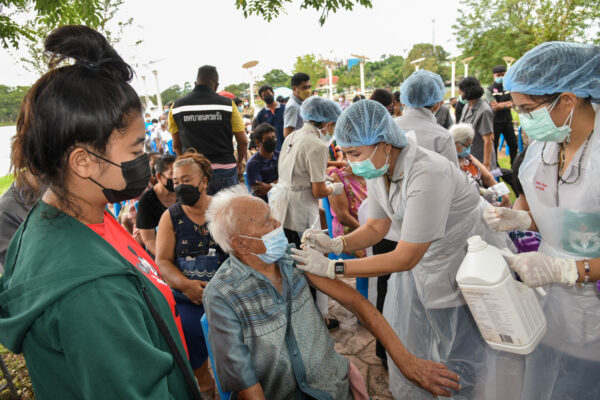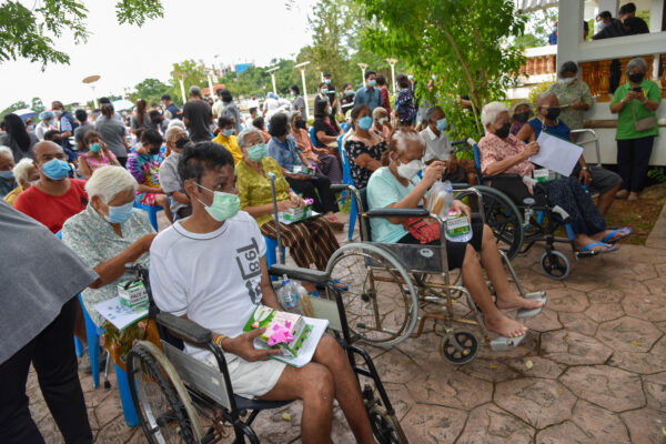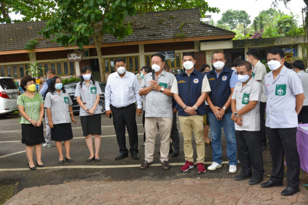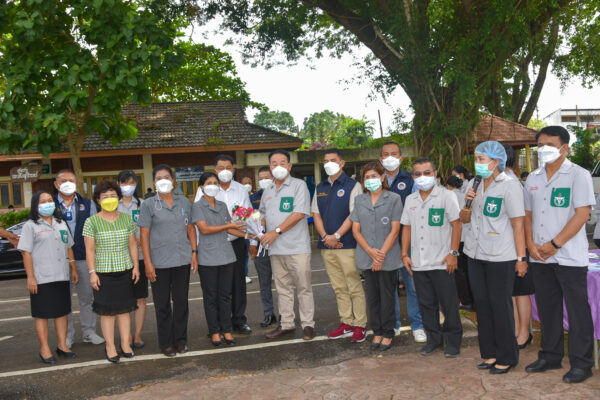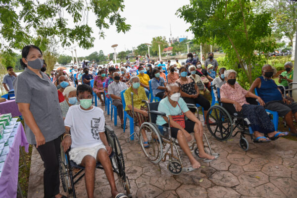 ที่อาคารริมสระกะพังสุรินทร์ หน่วยแพทย์เคลื่อนที่ พอ.สว. จังหวัดตรัง นายบุ่นเล้ง โล่สถาพรพิพิธ นายก อบจ.ตรัง พร้อมคณะผู้บริหาร ปลัด อบจ.ตรัง สมาชิกสภา อบจ.ตรัง รอง ผอ.รพ.ตรัง ผอ.รพ.โรคผิวหนังเขตร้อนภาคใต้ จังหวัดตรัง พัฒนาสังคมและความมั่นคงของมนุษย์จังหวัดตรัง เจ้าหน้าที่ อสม.เทศบาลนครตรัง เจ้าหน้าที่กลุ่มงานการพยาบาลชุมชน รพ.ตรัง ร่วมในพิธีฉีดวัคซีนป้องกันโควิด-19 ซิโนฟาร์ม ของอบจ.ตรัง ให้กับประชาชนที่เป็นผู้พิการ ผู้ป่วยติดเตียง ผู้สูงอายุ 70 ปีขึ้นไป และผู้ด้อยโอกาส จำนวน 105 คน โดยมีผู้มารับบริการฉีดวัคซีนที่จุดบริการและบริการฉีดวัคซีนให้กับผู้ป่วย ติดเตียงถึงบ้าน โดยเจ้าหน้าที่กลุ่มงานการพยาบาลชุมชน รพ.ตรัง ได้มอบกล่องยาสามัญประจำบ้าน และเจ้าหน้าที่พัฒนาสังคมและความมั่นคงของมนุษย์จังหวัดตรัง มอบตะกร้าน้ำใจให้กับกลุ่มคนเปราะบางด้วย