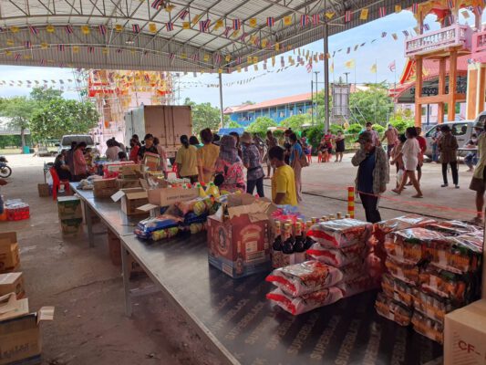 นายวินิจ เฮ่าบุญ พาณิชย์จังหวัดสุพรรณบุรี เปิดโครงการ พาณิชย์ร่วมใจต้านภัยโควิด 19 โครงการช่วยเหลือลดภาระประชาชน ระหว่างวันที่11 – 26กันยายน2564ทั้ง10อำเภอ16วัน16จุดจำหน่าย โดยมีนายสมมาตร วิสุทธิวงษ์ คณะทำงานรองนายกรัฐมนตรีและรัฐมนตรีว่าการกระทรวงพาณิชย์ ร่วมลงพื้นที่ให้กำลังใจ และวันนี้(12กย.64)ที่วัดวังจิก อำเภอสามชุก สุพรรณบุรีโดยมีประชาชนจำนวนมากทยอยเข้าเลือกซื้อสินค้า อาทิ ไข่ไก่เบอร์3แผงละ80บาท ปลากระป๋อง4บาท น้ำมันปาร์มขวดละ30บาท น้ำตาลทรายกก.ละ18บาท น้ำปลา ข้าวสาร บะหมี่สำเร็จรูป เป็นต้น