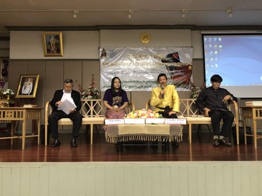 ด้านนางสาวอัจฉรา แข็งสาริกิจ ผู้อำนวยการสำนักศิลปกรที่ 12 กล่าวเพิ่มเติมว่า การเสวนาในครั้งนี้ มีวิทยากรการเสวนาประกอบด้วย นายสด แดงเอียด อดีตอธิบดีกรมการศาสนา นายบุญเดือน ศรีวรพจน์ ผู้เชี่ยวชาญด้านอักษรศาสตร์ กรมศิลปากร นางสาวจันทร์ยวีร์ สมปรีดา(รอมแพง)ผู้ประพันธ์นวนิยายเรื่อง “บุพเพสันนิวาส” และนายเขมชาติ เทพไชย อดีตผู้อำนวยการสำนักงานศิลปวัฒนธรรมร่วมสมัย กระทรวงวัฒนธรรม