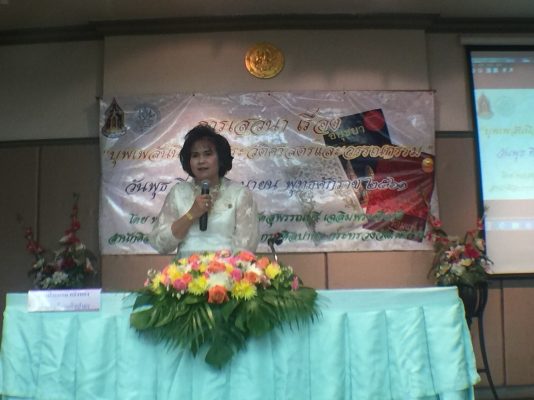 ที่ หอสมุดแห่งชาติจังหวัดสุพรรณบุรี เฉลิมพระเกียรติ นางประนอม คลังทอง รองอธิบดีกรมศิลปากร เป็นประธานเปิดการเสวนา “บุพเพสันนิวาส ประวัติศาสตร์และวรรณกรรม” ในวันนี้(13 มิ.ย.61)
