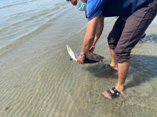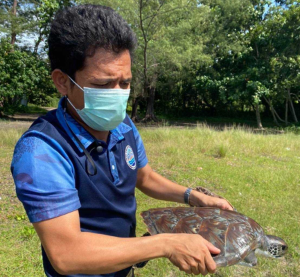 สถาบันทรัพยากรธรรมชาติและสิ่งแวดล้อม มทร.ศรีวิชัย วิทยาเขตตรัง ร่วมกับ ศูนย์วิจัย ทช. ทะเลอันดามันตอนล่าง ร่วมอนุบาลเต่ากระและปล่อยคืนสู่ธรรมชาติ