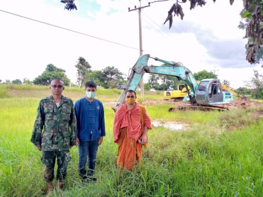 ทั้งนี้เจ้าของแปลง เจ้าหน้าที่พัฒนาชุมชน และนักพัฒนาพื้นที่ต้นแบบ (นพต.) ได้ทำพิธีบวงสรวงขอขมาต่อสิ่งศักดิ์สิทธิ์เพื่อความเป็นศิริมงคล ก่อนขุดปรับพื้นที่ตามแบบแปลนของกรมการพัฒนาชุมชน ในพื้นที่แปลง (CLM) ของอำเภอรัตนบุรี และได้นิมนต์พระอาจารย์สังคม ธนปัญโญ ให้แนวคิด แนวทางการทำงานและให้กำลังใจในการปฏิบัติงานแก่เจ้าหน้าที่ และนักพัฒนาพื้นที่ต้นแบบ (นพต.)เพื่อตอบแทนคุณแผ่นดิน