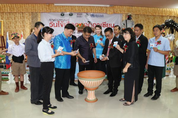 มื่อเวลา 9.00 น. วันที่ 15 มิถุนายน 2561 ณ โรงเรียนวัดห้วยจรเข้วิทยาคม อำเภอเมืองนครปฐม จังหวัดนครปฐม นายภิญโญ ประกอบผล รองผู้ว่าราชการจังหวัดนครปฐม ได้เป็นประธานพิธีเปิดกิจกรรม Kick off วัน ASEAN Dengue Day โดยมีนายแพทย์สมาน ฟูตระกูล ผู้อำนวยการสำนักงานป้องกันควบคุมโรคที่ 5 จังหวัดราชบุรี เป็นผู้กล่าวรายงาน ภายในงานมีการจัดบูธนิทรรศการความรู้เรื่อง “การป้องกันควบคุมโรคไข้เลือดออก” โดยทีมวิทยากรจากสำนักงานป้องกันควบคุมโรคที่ 5 จังหวัดราชบุรี และสำนักงานสาธารณสุขจังหวัดนครปฐม