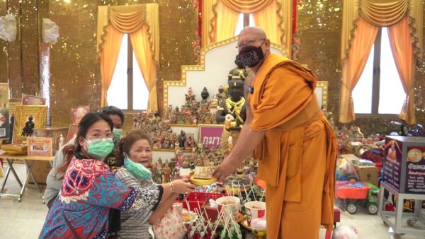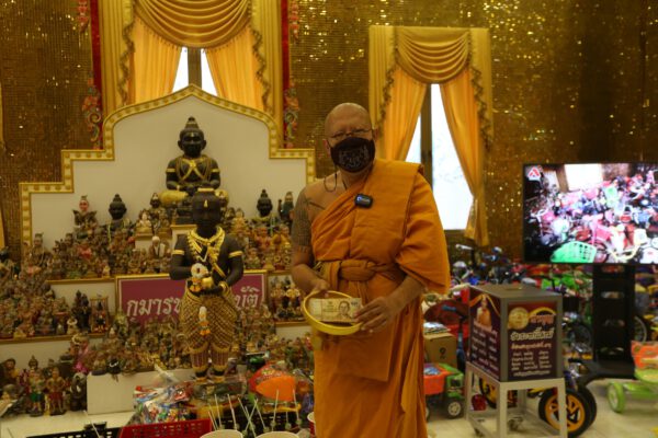 วันนี้ 21 กันยายน 2564 ภายในตำหนักกุมารสมบัติ ที่ตั้งอยู่ภายในวิหารพระพุทธเมตตาประทานพร วัดไผ่ล้อม อ.เมือง จ.นครปฐม น.ส.พัชญาณัฐ์ บุญจันทร์บุญจันทร์พร้อมด้วยนางวิไล บุญจันทร์ สองแม่ลูกชาวกรุงเทพมหานคร ได้เข้ามาทำพิธีแก้บนกับรูปหล่อของกุมารสมบัติ โดยการนำเงินสด 100,000 บาท และจัดอาหารเป็นไก่ทอด น้ำแดง และขนมสำหรับเด็ก มาจัดตั้งไว้ที่หน้าตำหนักของกุมารสมบัติ โดยแจ้งกับเจ้าหน้าที่ของวัดไผ่ล้อมว่าได้รับโชคจากการซื้อสลากจำนวนนับล้านบาท หลังจากได้เข้ามาทำบุญที่วัดไผ่ล้อมเมื่อช่วงปลดล๊อคดาวน์เมื่อต้นเดือนกันยายนที่ผ่านมา