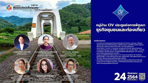 อาจารย์กิติ จารุอารยนันท์ ประธานสถาบันพัฒนาธุรกิจภูมิภาค เปิดเผยว่าสถาบันพัฒนาธุรกิจภูมิภาค โดย มูลนิธิองค์กรเครือข่ายบริการธุรกิจภูมิภาค ได้ออกแบบ และจัดทำรายการสื่อออนไลน์เพื่อชุมชนขึ้น ทุกวันศุกร์ เวลา 18.30 – 20.00 น. เพื่อให้ประชาชนทุกภาคส่วนได้รับรู้ข่าวสาร และแนวทางในการรับมือ แก้ปัญหา เพื่อการดำรงชีวิตอย่างมีความสุข และยั่งยืน โดยในวันที่ 24 กันยายน 2564 ประเด็น “หมู่บ้าน CIV ประตูแห่งการพัฒนาธุรกิจชุมชนและท่องเที่ยว” ในหัวข้อสนทนา- ความเป็นมาของหมู่บ้านอุตสาหกรรมสร้างสรรค์ (Creative Industry Village) ผลิตภัณฑ์และบริการที่เป็นเสน่ห์ชุมชน ที่ได้สร้างสรรค์ จากวิถีชีวิต อัตลักษณ์ชุมชน เชื่อมโยงกับการพัฒนาแหล่งการท่องเที่ยว กระจายรายได้ในชุมชน ถอดบทเรียน 3 ดาวเด่น 3 วัฒนธรรม ของชุมชนบ้านวังกรด ชุมชนบ้านเนินขาม และขุมชนบ้านโคกสลุง อาทิ ชาติพันธ์ การแต่งกาย ภาษา ประเพณี ศิลปะ ความเชื่อ อาหารพื้นถิ่น สินค้าของที่ระลึก กลไกสำคัญที่ใช้ขับเคลื่อนให้หมู่บ้าน CIV เป็นประตูแห่งการพัฒนาธุรกิจชุมชนและท่องเที่ยว- เปิดมุมมองวิสัยทัศน์การพัฒนาหมู่บ้าน CIV ในสถานการณ์โควิด-19 พฤติกรรมผู้บริโภควิถีใหม่ การท่องเที่ยวชุมชนแนวใหม่ ยุคโลกดิจิทัล ปรับเปลี่ยนการจัดการต่างๆ ที่รวดเร็ว เพื่อยกระดับเศรษฐกิจชุมชนสู่ความยั่งยืน- แลกเปลี่ยนความคิดเห็นในการบูรณาการความร่วมมือและเชื่อมโยงกับภาคีของรัฐ/เอกชน/สถาบันการศึกษา/ชุมชนอื่น ๆ ให้เป็นเครือข่ายส่งเสริมและสนับสนุนตามศักยภาพของชุมชนให้พึ่งพาตนเองได้