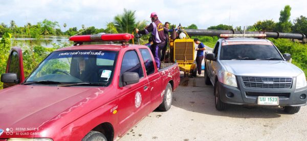 นำเครื่องสูบน้ำไปติดตั้งเพื่อเร่งระบายน้ำออกจากพื้นที่เกษตรกรรมให้เร็วที่สุด เพื่อช่วยเหลือบรรเทาความเดือดร้อน ให้กับประชาชนที่ประสบอุทกภัยในพื้นที่ตำบลสระแก้วและพื้นที่ใกล้เคียง