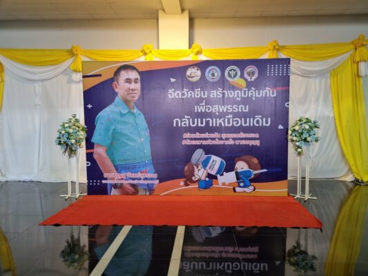 นายสมเกียรติ กู้เกียรติภูมิ ที่ปรึกษานายก อบจ.สุพรรณบุรี กล่าวว่า อบจ.สุพรรณบุรี มีความยินดีเป็นอย่างยิ่งที่ได้ให้การสนับสนุนสถานที่ในการฉีดวัคซีน พร้อมทั้งจัดรถรับ – ส่ง ให้บริการแก่ผู้มาฉีดวัคซีน และขอขอบคุณโรงพยาลบาลเจ้าพระยายมราชและสำนักงานสาธารณสุขอำเภอเมืองสุพรรณบุรี ที่ได้จัดเจ้าหน้าที่มาให้บริการฉีดวัคซีนให้กับประชาชนตลอดทั้งวัน