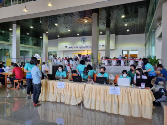 ณ ห้องประชุมใหญ่สำนักงานองค์การบริหารส่วนจังหวัดสุพรรณบุรี โดยโรงพยาบาลเจ้าพระยายมราชนำโดยนายแพทย์ณรงค์ ประกายรุ้งทอง รอง ผอ.ฝ่ายปฐมภูมิหัวหน้าคณะทำงานบริหารวัคซีนสุพรรณบุรี, นายแพทย์ชาติชาย สามัคคีนิชย์ รอง ผอ. ฝ่ายพัฒนาระบบและสนับสนุนบริการสุขภาพโรงพยาบาลเจ้าพระยายมราช พร้อมด้วยแพทย์ พยาบาล และบุคลากรทางการแพทย์ และเจ้าหน้าที่จากสำนักงานสาธารณสุขอำเภอเมืองสุพรรณบุรีจำนวน 250 คน มาให้บริการฉีดวัคซีนกับประชาชนในวันนี้