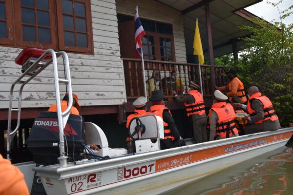 ไปมอบแก่ผู้ว่าราชการจังหวัด และนายอำเภอต่างๆ ซึ่งเป็นตัวแทนราษฎรที่ประสบอุทกภัย ณ วัดพิพัฒนาราม (วัดดอนไข่เต่า) อำเภอบางปลาม้า จังหวัดสุพรรณบุรี เพื่อช่วยบรรเทาความเดือดร้อนในเบื้องต้น และเป็นขวัญกำลังใจแก่ผู้ประสบอุทกภัยและผู้ที่ได้รับผลกระทบ