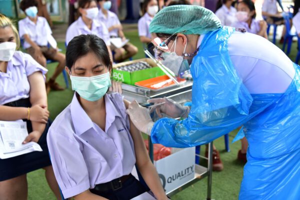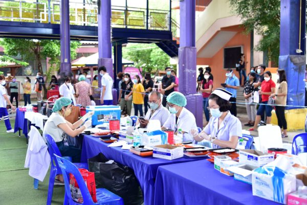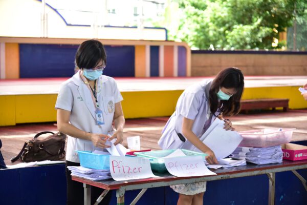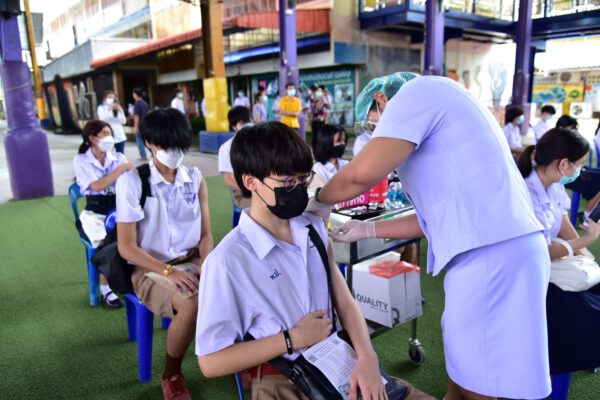 บรรยากาศการฉีดวัคซีนไฟเซอร์ให้กับกลุ่มเด็กนักเรียนโรงเรียนพระปฐมวิทยาลัย ซึ่งภาพรวมของจังหวัดนครปฐมมีนักเรียนที่มีความประสงค์จะฉีดวัคซีน รวม 54,526 คิดเป็น 78.32 % จากจำนวนทั้งหมด 69,611 คน