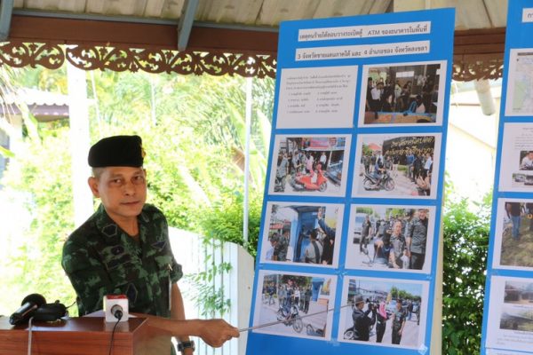 กองอำนวยการรักษาความมั่นคงภายในภาค 4 ส่วนหน้า แถลงข่าวความคืบหน้าเหตุระเบิดตู้ ATM ในพื้นที่จังหวัดชายแดนภาคใต้ และ 4 อำเภอของ จังหวัดสงขลา เมื่อ 20 พฤษภาคม 2561