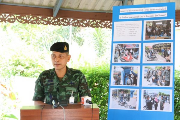เมื่อ 22 มิถุนายน 2561 เวลา 09.30 นาฬิกา พันเอก ธนาวีร์ สุวรรณรัตน์ รองโฆษกกองอำนวยการรักษา ความมั่นคงภายในภาค 4 ส่วนหน้า เปิดเผยว่า ตามที่คนร้ายได้ลอบวางระเบิดตู้ ATM ของธนาคารในพื้นที่ 3 จังหวัดชายแดนภาคใต้ และ 4 อำเภอของ จังหวัดสงขลา เมื่อวันที่ 20 พฤษภาคม 2561 ที่ผ่านมา