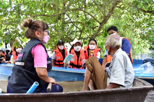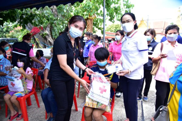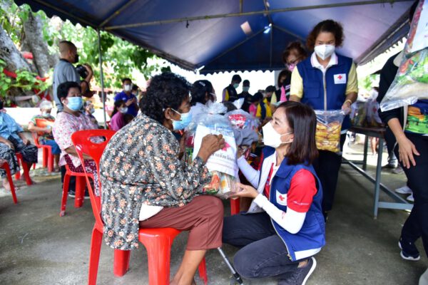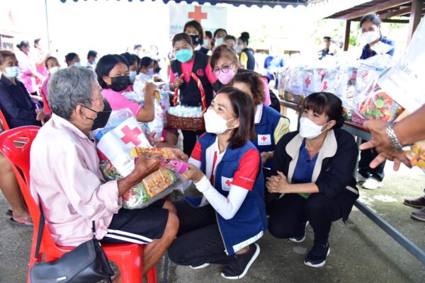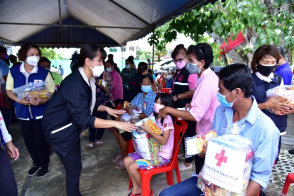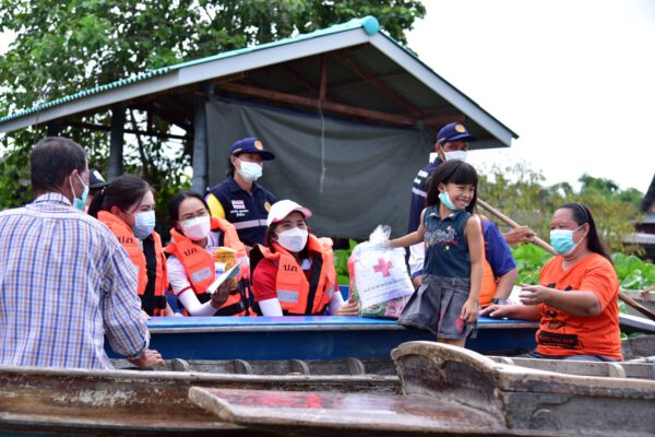 วันที่ 8 ตุลาคม 2564 ที่วัดบางปลา ตำบลบางปลา อำเภอบางเลน จังหวัดนครปฐม นางวราภรณ์ เจริญศิริโชติ นายกเหล่ากาชาดจังหวัดนครปฐม และประธานแม่บ้านมหาดไทยจังหวัดนครปฐม นำคณะสมาชิกเหล่ากาชาดจังหวัด หัวหน้าส่วนราชการและผู้นำท้องที่ ลงพื้นที่มอบถุงยังชีพช่วยเหลือครัวเรือนเปราะบางที่อาศัยอยู่ริมแม่น้ำท่าจีน ในพื้นที่อำเภอบางเลน จังหวัดนครปฐม ที่ได้ประสบปัญหาอุทกภัย หลังได้รับผลกระทบจากระดับน้ำในแม่น้ำท่าจีนเพิ่มสูงขึ้น จากอิทธิพลของพายุโซนร้อน ทำให้เอ่อล้นท่วมบ้านเรือนทำให้ได้รับความเดือดร้อน จำนวน 70 ครัวเรือน