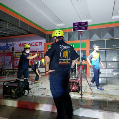 ได้นำกำลังเจ้าหน้าที่ อุปกรณ์แสงสว่าง และ อุปกรณ์ดับเพลิงรถน้ำ สนับสนุนที่เกิดเหตุร่วมกับ ปภ จังหวัดราชบุรี เจ้าหน้าที่ทหาร เจ้าหน้าที่มูลนิธิ และ เจ้าหน้าที่ดับเพลิงกว่า30 คันระดมกำลังช่วยควบคุมเพลิง ที่เกิดเหตุพบว่า ตัวอาคารที่เกิด เพลิง ไหม้ เป็นตัวอาคารด้านหลังของบริษัท เป็นพื้นที่อาคารสำหรับเก็บจำพวกวัสดุสินค้าต่าง ๆ เช่น ถังสี ทินเนอร์ และวัตถุไวไฟ ร่วมถึงเครื่องใช้ต่าง ๆ ใกล้กันจะเป็นวัสดุก่อสร้างจำพวกเหล็ก และเฟอร์นิเจอร์ต่าง ๆ โดยอาคารหลังที่เกิดเพลิงไหม้นั้นถูกล้อมรอบด้วยกำแพงปูนทึบ ทำให้รถดับเพลิงหลายคันไม่สามารถเข้าไปถึงด้านในที่เกิดเหตุได้ แม้จะอ้อมไปด้านข้างและด้านหลัง ทำให้เป็นปัญหาต่อการดับเพลิงซึ่งเป็นจุดเกิดเหตุที่เพลิงกำลังลุกโหมกระหน่ำอย่างรุนแรง เจ้าหน้าที่ระดมช่วยกันฉีดน้ำจควบคุมเพลิงไว้อยู่ในวงจำกัดได้
