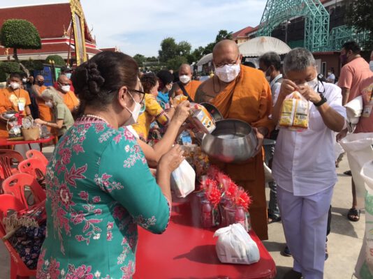 ซึ่งมีพระครูปลัดสิทธิวัฒน์ หลวงพี่น้ำฝน เจ้าอาวาสวัดไผ่ล้อม เป็นองค์ประธานฝ่ายสงฆ์ นำคณะพระภิกษุสงฆ์ และสามเณร ออกรับบิณฑบาตร ข้าวสารอาหารแห้ง จากพุทธศาสนิกชนจำนวนมาก และมีนายสมชาติ นายเงี๊ยบ สาลีพัฒนา ร้านก๋วยเตี๋ยวลูกชิ้นปลานายเงี๊ยบ เป็นประธานฝ่ายฆารวาส