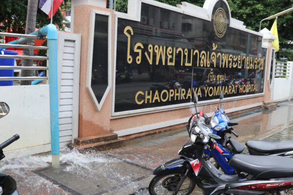 และโดยรอบด้านข้าง ด้านหลัง ที่ติดกับริมฝั่งท่าจีน เนื่องจาก น้ำได้ซึมจากท่อระบายน้ำมายังชั้นใต้ดิน ในส่วนของอาคารตึกอุบัติเหตุ อาคารอำนวยการ 10 ชั้น เบื้องต้นทางรพ.เจ้าพระยายมราช ได้มีการสำรองพื้นที่ จัดสร้างจุดรับส่งผู้ป่วย บริเวณด้านข้าง รพ.ตึกอำนวยการ 10 ชั้น หากน้ำทะลักเอ่อท่วมเส้นทางด้านหน้าของ รพ. จะได้มีการสำรองจุดรับส่ง เคลื่อนย้ายผู้ป่วย