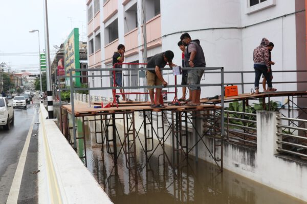 โดยมีการเตรียมสร้างสะพาน ติดกับ ขอบสะพาน อาชาสีหมอก เชื่อมต่อถนน ทำเป็นจุดรับส่งผู้ป่วย ส่วนบริเวณพื้นที่โดยรอบ ตัวเมืองเทศบาลเมืองสุพรรณบุรี พื้นที่เศรษฐกิจ บรรดาห้างร้านต่างๆ ได้เริ่มมีการก่อแนวกำแพงกั้นน้ำแล้ว หวั่นน้ำทะลักเข้าท่วม
