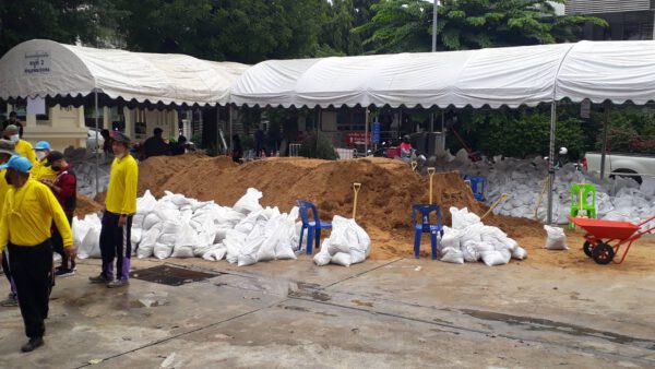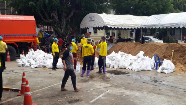 – บุคลากร ทางการแพทย์,อาสาสมัคร,เจ้าหน้าที่ ที่ปฏิบัติ หน้าที่เตรียมกระสอบทราย ป้องกันน้ำท่วม 80 กล่อง