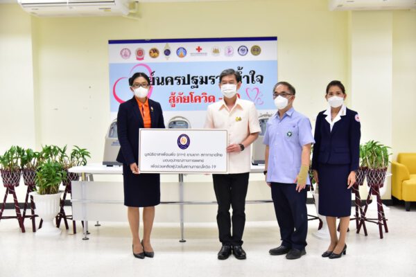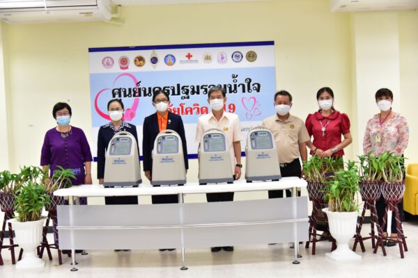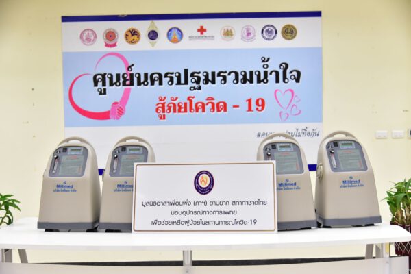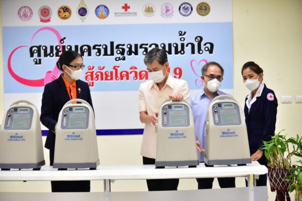 วันที่ 26 ตุลาคม 2564 ที่ห้องศูนย์ปฏิบัติการโควิด-19 ศาลากลางจังหวัดนครปฐม นายสุรศักดิ์ เจริญศิริโชติ ผู้ว่าราชการจังหวัดนครปฐม พร้อมด้วยนางวราภรณ์ เจริญศิริโชติ นายกเหล่ากาชาดจังหวัดนครปฐม ปลัดจังหวัด หัวหน้าส่วนราชการการ ร่วมรับมอบเครื่องทำออกซิเจน จำนวน 4 เครื่อง จากมูลนิธิอาสาเพื่อนพึ่ง (ภาฯ) ยามยากสภากาชาดไทย โดยคุณมณฑิชา สุขจันทร์ ผู้ช่วยผู้จัดดการมูลนิธิอาสาเพื่อนพึ่ง (ภาฯ) ยามยากสภากาชาดไทย สายงานพัฒนาความยั่งยืนและกิจกรรมเพื่อสังคม เป็นผู้แทนมอบ