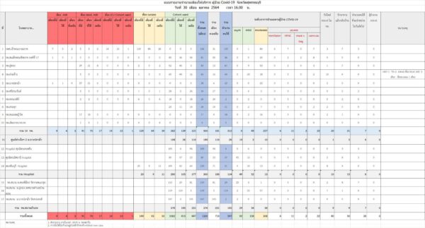 วันนี้ ( 31 ต.ค..64) คณะกรรมการโรคติดต่อจังหวัดสุพรรณบุรี เปิดเผยข้อมูล สถานการณ์การใช้เตียงผู้ป่วย COVID-19 ประจำวันที่ 30 ตุลาคม 2564 เมื่อเวลา 16.00 น. จังหวัดสุพรรณบุรีมีเตียงรับผู้ป่วยทั้งหมด 1,320 เตียง มีผู้ป่วยในโรงพยาบาลทั้งหมด 597 คน (บางโรงพยาบาลเสริมเตียงในห้องผู้ป่วย) มีเตียงคงเหลือ 718 เตียง โดยจำแนกผู้ป่วยเป็น 4 อาการ ดังนี้