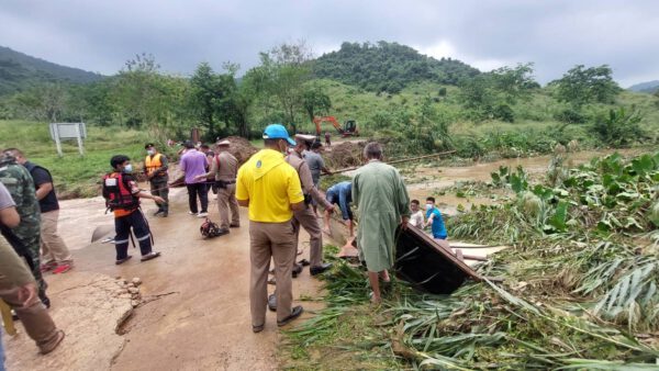 วันที่ 9 พฤศจิกายน 2564 เวลา 8.30 น ศูนย์ตอบโต้ภัยพิบัติจังหวัดราชบุรีได้รับแจ้ง ในพื้นที่มีน้ำท่วมสะพานขาด หลายพื้นที่ในตำบลยางหักได้วิทยุประสานให้เจ้าหน้าที่ลงพื้นที่ตรวจสอบ พบว่ามีถนนและคอสะพานขาดหลายจุดในพื้นที่ตำบลยางหัก ต่อมาเวลา11.00 น ได้รับแจ้งเหตุ มีชาวบ้าน ตกหล่น ลงในท่อระบายน้ำ และได้ติดอยู่ในท่อระบายน้ำ บริเวณอุทยานไทยประจัน เขตพื้นที่หมู่ 2 ตำบลยางหัก อำเภอปากท่อจังหวัดราชบุรีศูนย์ตอบโต้ภัยพิบัติจังหวัดราชบุรีได้ ส่งเจ้าหน้าที่ กู้ภัยลงพื้นที่ พร้อมยุทโธปกรณ์ และรถพยาบาลไปที่จุดเกิดเหตุ ร่วมกับ พันเอกไพโรจน์เชื้อสมุด(กอ.รมนจังหวัดราชบุรี) เจ้าหน้าที่ ทหารกองพลพัฒนา เจ้าหน้าที่ตำรวจ นายสุธี เล้าสุบินประเสริฐ( นายอำเภอปากท่อ) นาย ลือชา วงศ์เปี่ยม (ปลัดอำเภอปากท่อ ) องค์การบริหารส่วนตำบลยางหัก หน่วยป้องกันรักษาป่าที่ รบ.3 พุยาง จังหวัดราชบุรี กำนันผู้ใหญ่บ้าน ลงพื้นที่ร่วมในภารกิจครั้งนี้