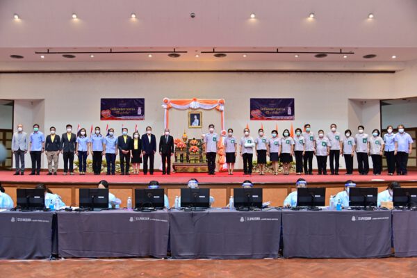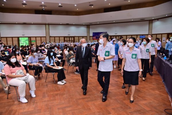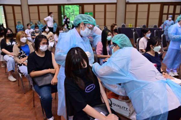 วันที่ 11 พฤศจิกายน 2564 ที่ศูนย์ศิลปวัฒนธรรมเฉลิมพระเกียรติ 6 รอบพระชนมพรรษา มหาวิทยาลัยศิลปากร วิทยาเขตพระราชวังสนามจันทร์ อำเภอเมืองจังหวัดนครปฐม มูลนิธิแพทย์อาสาสมเด็จพระศรีนครินทราบรมราชชนนี หรือ พอ.สว. ลงพื้นที่ฉีดวัคซีนซิโนฟาร์มพระราชทาน สมเด็จพระเจ้าน้องนางเธอ เจ้าฟ้าจุฬาภรณวลัยลักษณ์ อัครราชกุมารี กรมพระศรีสวางวัฒน วรขัตติยราชนารี องค์ประธานกิตติมศักดิ์ มูลนิธิ พอ.สว. ให้กับนักศึกษามหาวิทยาลัยศิลปากร วิทยาเขตพระราชวังสนามจันทร์ จำนวน 1,902 คน โดยนายสุรศักดิ์ เจริญศิริโชติ ผู้ว่าราชการจังหวัดนครปฐม พร้อมด้วย นายกเหล่ากาชาด นายแพทย์สาธารณสุข ผู้อำนวยการโรงพยาบาลนครปฐม นายอำเภอเมืองนครปฐม อธิการบดีและคณะผู้บริหารมหาวิทยาลัยศิลปากร ร่วมตรวจเยี่ยมและให้กำลังใจทีมปฏิบัติงาน ประกอบด้วย ทีมแพทย์ พอ.สว. จังหวัดราชบุรี สำนักงานสาธารณสุขจังหวัดนครปฐม โรงพยาบาลนครปฐม และโรงพยาบาลนครชัยศรี รวมทั้งสิ้น 112 คน ซึ่งการฉีดวัคซีนพระราชทานในครั้งนี้ ได้รับความร่วมมือ อำนวยความสะดวก และการสนับสนุนจากหน่วยงานทุกภาคส่วน