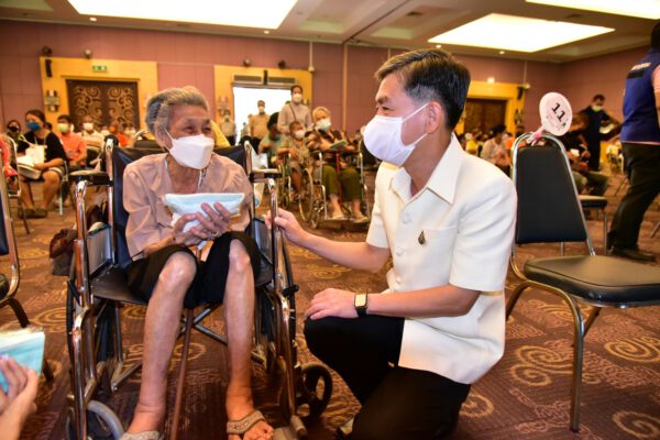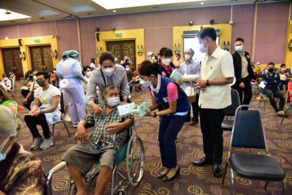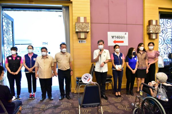 วันที่ 16 พ.ย. 2564 ที่อุทยานการอาชีพชัยพัฒนา อำเภอเมือง จังหวัดนครปฐม นายสุรศักดิ์ เจริญศิริโชติ ผู้ว่าราชการจังหวัดนครปฐม พร้อมด้วย นางวราภรณ์ เจริญศิริโชติ นายกเหล่ากาชาดจังหวัดนครปฐม ประธานแม่บ้านมหาดไทยจังหวัด นายอำเภอเมืองนครปฐม นายแพทย์สาธารณสุขจังหวัด และหัวหน้าส่วนราชการ เยี่ยมให้กำลังใจผู้มารับการฉีดวัคซีน Moderna สภากาชาดไทย