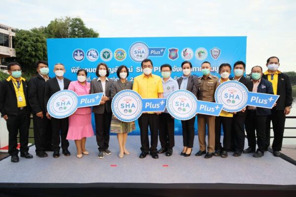 วันที่ 25 พฤศจิกายน 2564 นางสาวสรียา บุญมาก ผู้อำนวยการ ททท. สำนักงานกาญจนบุรี กล่าวกับผู้สื่อข่าวว่า จังหวัดกาญจนบุรีเดินหน้าสร้างความเชื่อมั่นด้านการท่องเที่ยวอย่างต่อเนื่อง เพื่อให้พร้อมสำหรับการเปิดเมืองรับนักท่องเที่ยวแบบวิถีใหม่ โดยทำการรณรงค์ให้สถานประกอบการทั้ง 10 กลุ่ม สมัครขอรับมาตรฐานความปลอดภัยด้านสุขอนามัย Amazing Thailand Safety and Health Administration (SHA) และ SHA Plus พร้อมกับจัดพิธีมอบตราสัญลักษณ์ SHA Plus ให้กับผู้ประกอบการที่ผ่านเกณฑ์มาตรฐาน จำนวน 40 ราย เมื่อวันที่ 24 พฤศจิกายน 2564 ณ ร้านอาหารคีรีธารา รีทรีต บริเวณสะพานข้ามแม่น้ำแคว อ.เมือง จ.กาญจนบุรี โดยนายจีระเกียรติ ภูมิสวัสดิ์ ผู้ว่าราชการจังหวัดกาญจนบุรี ได้ให้เกียรติเป็นประธานมอบตราสัญลักษณ์ฯ ดังกล่าว และ น.ส.จุฑาทิพย์ เจริญลาภ ผู้อำนวยการภูมิภาคภาคกลาง ททท. กล่าวรายงานวัตถุประสงค์ของการจัดงาน มีหัวหน้าหน่วยงานภาครัฐ ภาคเอกชน คณะกรรมการขับเคลื่อนมาตรฐานความปลอดภัยด้านสุขอนามัยจังหวัดกาญจนบุรี ผู้ประกอบการท่องเที่ยว แขกผู้มีเกียรติ และสื่อมวลชนเข้าร่วมงาน