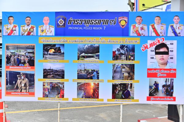 พลตำรวจโท ธนายุตม์ แจ้งยอดสุข ผู้บัญชาการตำรวจภูธรภาค 7 กล่าวว่า จากการตรวจสอบในที่เกิดเหตุ พบว่ามีผู้ได้รับบาดเจ็บ 1 คน คือ นางสาวสิราสินี ตำแหน่งหัวหน้าคลังสินค้า ได้ให้การว่าก่อนเหตุได้พบชาย 2 คน เข้ามาก่อเหตุและได้หลบหนีไป ต่อมาเจ้าหน้าที่ตำรวจได้ติดตามสืบสวนตามพยานหลักฐานในที่เกิดเหตุ ประกอบกับนางสาวสิราสินีมีพิรุธในการให้ปากคำจึงได้สอบสวนเชิงลึกจนสารภาพว่าเป็นผู้ก่อเหตุ โดยใช้ไฟแช๊คจุดกระดาษแล้ววางไว้ในกล่องกระดาษบรรจุน้ำมันหล่อลื่นจำนวน 2 จุด จนเกิดเพลิงไหม้ดังกล่าว ไม่ได้มีคนร้าย 2 คนตามที่ให้การครั้งแรกแต่อย่างใดทางเจ้าหน้าที่ตำรวจได้เก็บหลักฐานทั้งหมดรวบรวมเพื่อแจ้งข้อกล่าวหา ซึ่งโทษมีสูงสุดประหารชีวิตหรือจำคุกตลอดชีวิต โดยเจ้าตัวสารภาพว่ารู้สึกโกรธที่ถูกนายจ้างตำหนิจึงได้ก่อเหตุดังกล่าว