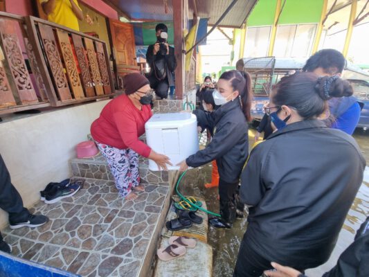 ลงพื้นที่ตรวจเยี่ยมให้กำลังใจแก่ประชาชนที่ได้รับผลกระทบจากอุทกภัย พร้อมมอบสุขาเคลื่อนที่จำนวน 10 ชุด ถุงยังชีพ จำนวน 10 ชุด และเรือ จำนวน 2 ลำ จุดแรกที่บ้านบางตาเถร หมู่ที่ 2 ตำบลบางตาเถร อำเภอสองพี่น้อง จังหวัดสุพรรณบุรี