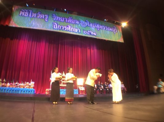 ที่ โรงละครแห่งชาติภาคตะวันตก จังหวัดสุพรรณบุรี นาบทรงพล ใจกริ่ม รองผู้ว่าราชการจังหวัดสุพรรณบุรี ประธานพิธีไหว้ครูประจำปีการศึกษา 2561