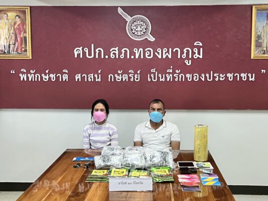 ผู้สื่อข่าวได้รับการเปิดเผยจาก พล.ต.ท.ธนายุตม์ วุฒิจรัสธำรงค์ ผบช.ภ.7(บิ๊กโอ๋) ว่าเมื่อ วันที่ 9 ธ.ค.64 ที่ผ่านมา เวลาประมาณ 11.30 น. กำลังเจ้าหน้าที่ตำรวจ ภายใต้การอำนวยการของ พล.ต.ท.ธนายุตม์ วุฒิจรัสธำรงค์ ผบช.ภ.7 , พล.ต.ต.พิสิฐ ตันประเสริฐรอง ผบช.ภ.7 , พล.ต.ต.ไพโรจน์ คุ้มภัย ผบก.ภ.จว.กาญจนบุรี , พล.ต.บรรยง ทองน่วมผบ.กกล.สุรสีห์ , พ.ต.อ.กฤตชัย ทองอยู่ รอง ผบก.ภ.จว.กาญจนบุรี , พ.ต.อ.สันติ พิทักษ์สกุล ผกก.สภ.ทองผาภูมิ พร้อมเจ้าหน้าที่ ตำรวจ สภ.ทองผาภูมิ สนธิกำลังร่วมกันจับกุม ผู้ต้องหา จำนวน 2 คน มี 1.นายสมบัติ อ้วนเส้ง อายุ 50 ปี ที่อยู่ 148/1 ม.9 ต.หนองลู อ.สังขละบุรี จ.กาญจนบุรี 2.น.ส.ชญาพัณ ศรีสุกใส อายุ 45 ปี ที่อยู่ 239/72 ม.1 ต.เขารูปช้าง อ.เมือง จ.สงขลา ได้พร้อม 1.ยาเสพติดให้โทษประเภท 1 (ยาไอซ์) จำนวน 13 ห่อ ชั่งรวมถุงบรรจุน้ำหนักประมาณ 10 กิโลกรัม 2.รถยนต์นั่งส่วนบุคคลยี่ห้อ ISUZU รุ่น Trooper สีเขียว น้ำตาล หมายเลขทะเบียน ภย 2435 กรุงเทพมหานคร จำนวน 1 คัน 3. ชนิด 2 ซิม 2 เครื่อง จับกุมได้บริเวณที่ทำการสายตรวจปรังกาสี ม.3 ต.ท่าขนุน อ.ทองผาภูมิ จ.กาญจนบุรี แจ้ง ฐานความผิด “ร่วมกันจำหน่ายซึ่งยาเสพติดให้โทษประเภท ๑ เมทแอมเฟตามีน (ยาไอซ์) โดยการมีไว้ในความครอบครองเพื่อจำหน่าย”