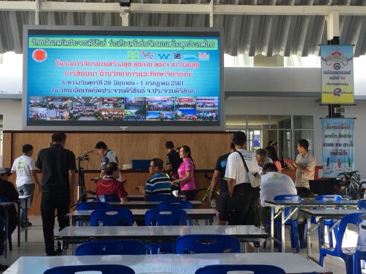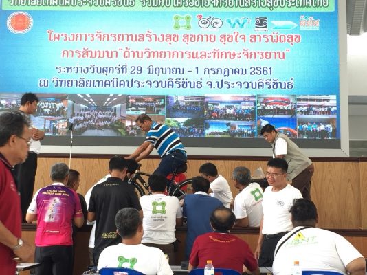 ที่อาคารโดมวิทยาลัยเทคนิคประจวบคีรีขันธ์ ดร.พีลิน สกุณนา ผู้อำนวยการวิทยาลัยเทคนิคประจวบคีรีขันธ์ เป็นประธานเปิด โครงการจักรยานสร้างสุข สุขกาย สุขใจ สารพัดสุข “ด้านวิทยาการและทักษะจักรยาน” พร้อมกล่าวว่า โครงการพัฒนาเครือข่ายจักรยานสร้างสุขประเทศไทย ถือเป็นอีกหนึ่งตัวอย่าง