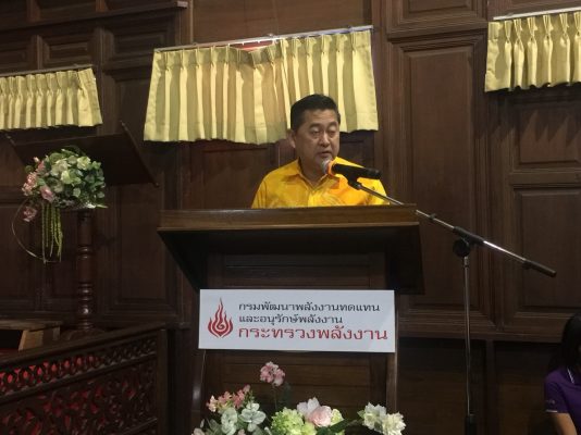 โดยมีผู้ทรงภูมิความรู้ หรือปราชญ์ชาวบ้านเป็นพี่เลี้ยงถ่ายทอดองค์ความรู้ ต่อยอดขยายออกไปในวงกว้างอย่างต่อเนื่อง สู่ความสำเร็จด้านส่งเสริมการใช้พลังงานทดแทน เช่น ส่งเสริมการใช้พลังงานแสงอาทิตย์อบแห้งพืชผลการเกษตร และสมุนไพร การใช้เตาชีวมวลในกลุ่มวิสาหกิจชุมชน กลุ่มผู้ผลิตสินค้าโอท้อปกระจายไปทุกอำเภอของสุพรรณบุรี ซึ่งครั้งนี้ มีวิสาหกิจชุมชนที่ประสบความสำเร็จมาออกบูธนิทรรศการให้ชมกันด้านนอก รวมทั้งสินค้าโอท็อปกว่า 20 ราย ปัจจุบันมีโครงการสำคัญมากคือ โครงการไทยนิยมยั่งยืนที่จะใช้พลังงานทดแทนเข้าถึงทุกพื้นที่ในทุกจังหวัด พร้อมเตรียมขับเคลื่อนโครงการสูบน้ำพลังงานแสงอาทิตย์แก่ชุมชน นับว่าเป็นประโยชน์มากสำหรับพี่น้องประชาชนเป็นอย่างยิ่ง