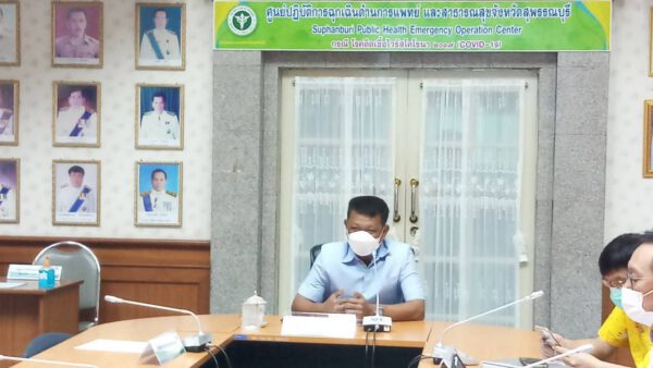 นายแพทย์พรณรงค์ ศรีม่วง นายแพทย์สาธารณสุขจังหวัดสุพรรณบุรี ผู้บัญชาการเหตุการณ์ศูนย์ปฏิบัติการตอบโต้ภาวะฉุกเฉินทางด้านการแพทย์และสาธารณสุข(Emergency Operation Center: EOC) กรณีโรคติดเชื้อไวรัสโคโรนา 2019 (COVID-19)ครั้งที่ 203/2564 เป็นประธานการประชุมติดตามการรายงานสถานการณ์ในแต่ละกลุ่มภารกิจที่ได้รับมอบหมายพร้อมทั้งได้มอบหมายแนวทางเพื่อนำไปปฏิบัติงานต่อไป แบบบูรณาเชิงรุก สร้างความเข้าใจแก่ประชาชน “ฉีดวัคซีนแล้วทำไมถึงยังติดเชื้อโควิด19”. ณ ห้องประชุมการบูร 1 สำนักงานสาธารณสุขจังหวัดสุพรรณบุรี ศูนย์ปฏิบัติการฯ COVID – 19 จังหวัดสุพรรณบุรี
