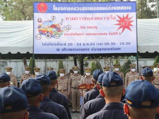 นาวาตรีหญิง จิรวัฒน์ ฉัตร์สงวนชัย โฆษกกรมการขนส่งทหารเรือ เปิดเผยว่า เมื่อวันที่20 ธันวาคม 2564 เวลา 09.00 น. กรมการขนส่งทหารเรือ โดย พลเรือตรี จรัสเกียรติไชยพันธุ์ เจ้ากรมการขนส่งทหารเรือ เป็นประธานในพิธีเปิดกิจกรรม “ตรวจสภาพรถยนต์ก่อนเทศกาลวันปีใหม่ 2565” ณ บริเวณลานจอดรถ นันทอุทยานสโมสร ถนนอิสรภาพ เขตบางกอกน้อย กรุงเทพมหานคร โดยกิจกรรมในครั้งนี้จัดขึ้นเพื่อให้กำลังพลกองทัพเรือ และประชาชนทั่วไป ได้เตรียมยานพาหนะในการเดินทางช่วงเทศกาลปีใหม่ให้เกิดความพร้อมและปลอดภัย โดยให้ครูฝึก และ นักเรียนจ่าขนส่งทหารเรือใช้ความรู้ ความสามารถในการดูแลยานพาหนะให้แก่ประชาชนที่มาใช้บริการอย่างเต็มกำลังความสามารถ เพื่อให้รถยนต์ทุกคันพร้อมสำหรับการเดินทางในเทศกาลปีใหม่ที่กำลังมาถึง