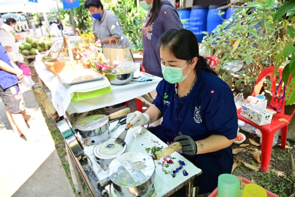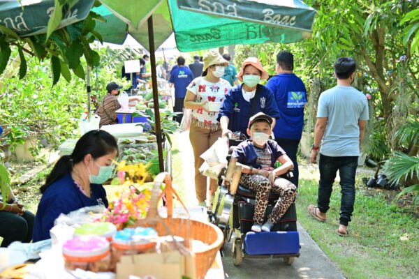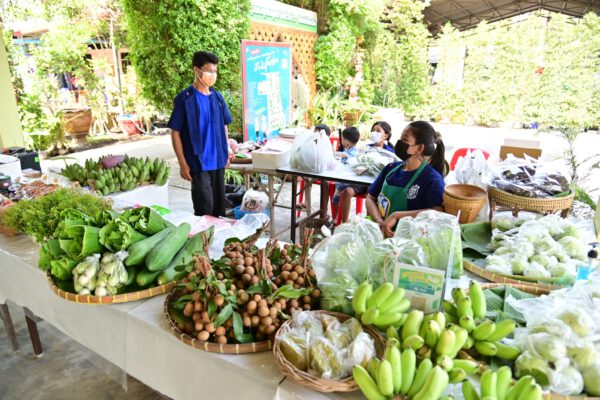 ชุมชนบ้านหัวอ่าว อำเภอสามพราน จังหวัดนครปฐม ร่วมกับเครือข่ายและเกษตรกรในพื้นที่ เปิดตลาดในสวน ชวนอุดหนุนผัก ผลไม้ ปลอดภัย ส่งตรงจากชวนสวน
