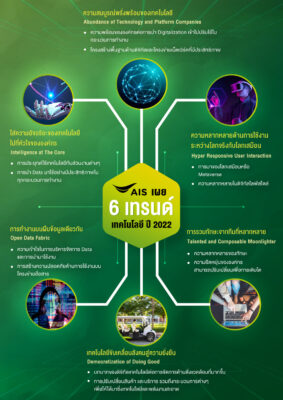 AIS จึงชี้ให้เห็นถึง 6 ประเด็นสำคัญด้านเทคโนโลยีดิจิทัลที่จะเกิดขึ้นในปี 2022 ที่ทุกองค์กรต้องจับตามองดังนี้